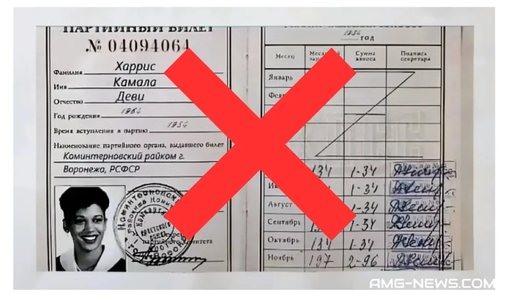 与这段视频一并流传的、指控哈里斯与共产主义联系紧密的还有一张哈里斯的“苏共党员证”。