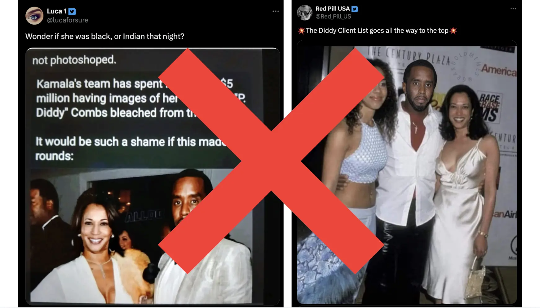 哈里斯宣布参选后,她的种族身份成为社交媒体热议议题。9月,饶舌歌手肖恩・“吹牛老爹”・科姆斯(Sean “Diddy” Combs)被检方以性交易、敲诈勒索等罪名起诉后,特朗普和一些社交媒体用户传播了假的哈里斯和“吹牛老爹”的“合影”,并暗示两人存在联系。