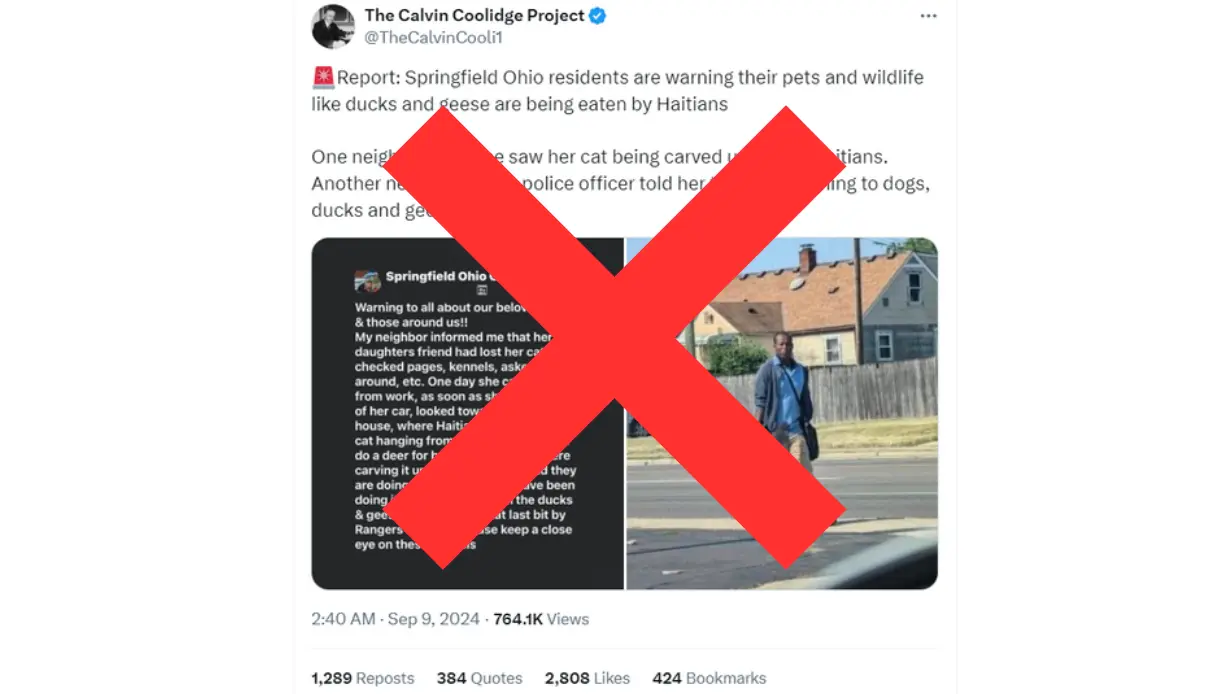 然而,这张照片与传言地点和海地移民没有关系。根据Reddit在8月份发布的一个帖子,这张男子手持死鸟的照片是在俄亥俄州哥伦布市拍摄的,位于斯普林菲尔德以东约78公里。 也没有证据证明画面中的人是海地移民。