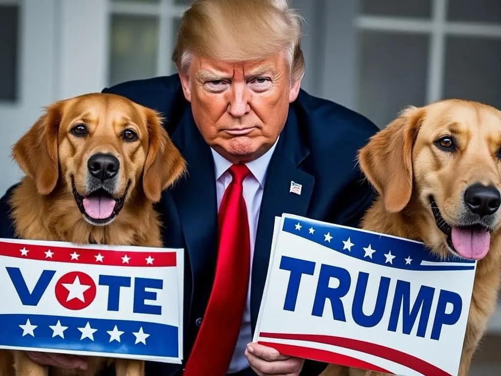 特朗普在社交媒体分享AI生成的他与狗的照片作为宣传文宣。