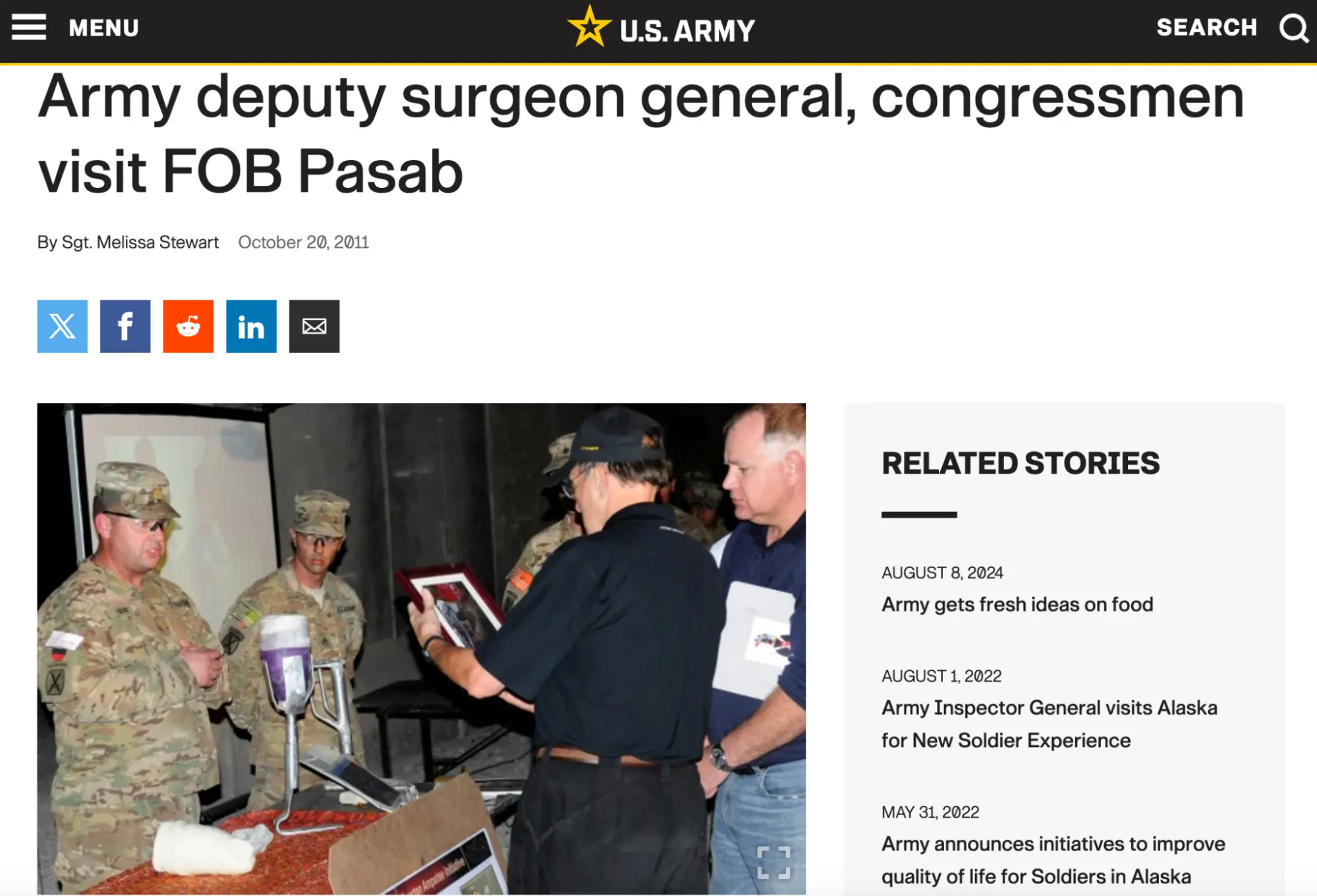 美国陆军网站(U.S. ARMY)2011年的报道详细介绍了沃尔兹的造访,并提到他是国会代表团的成员之一。