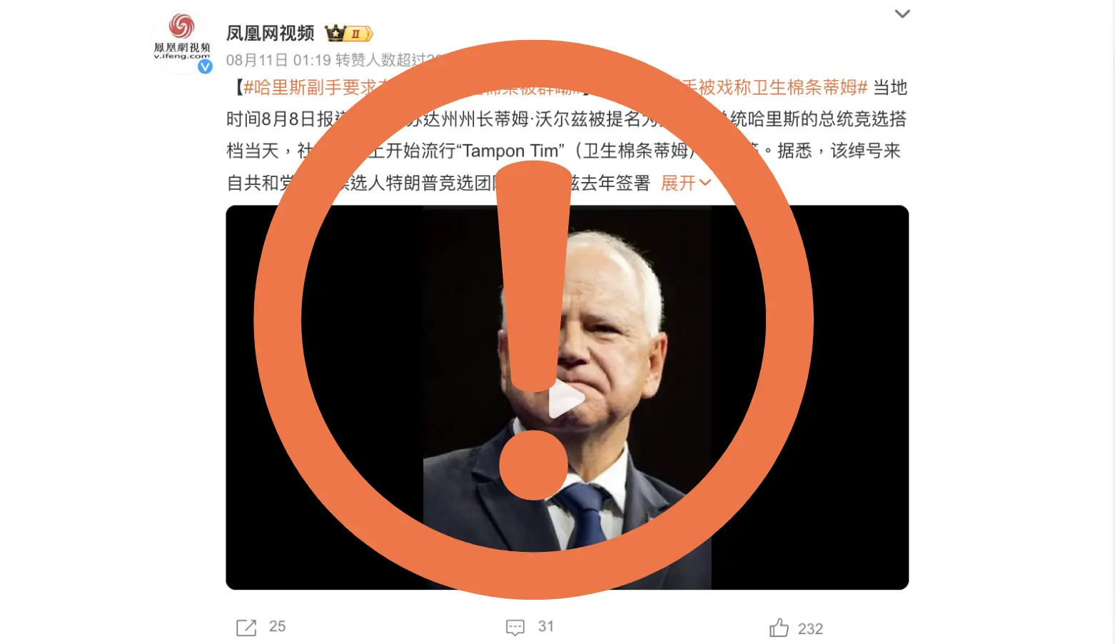 在成为民主党副总统候选人后,沃尔兹也遭遇了网络虚假信息的攻击。