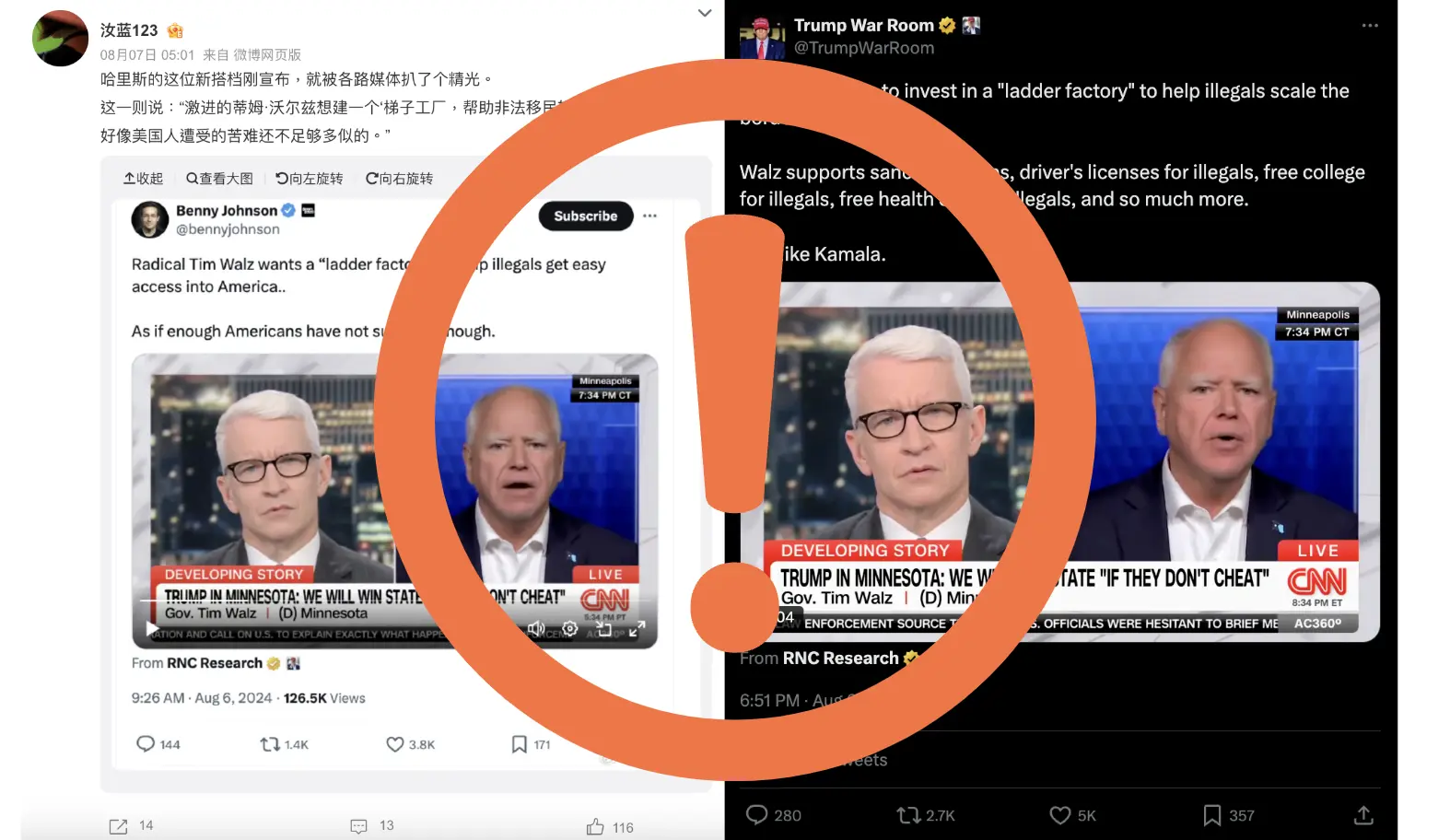 特朗普阵营的官方X账号“特朗普战情室(Trump War Room)”亦在8月初曾发布一段时长14秒的视频,指沃尔兹曾经提到自己会“投资建造 30 英尺高的梯子工厂”,意在支持帮助非法越境的移民。